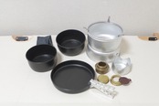 【セット内容】ソースパン×2、フライパン×1、スタンド、アルコールバーナー、B25用ゴトク(別売品)