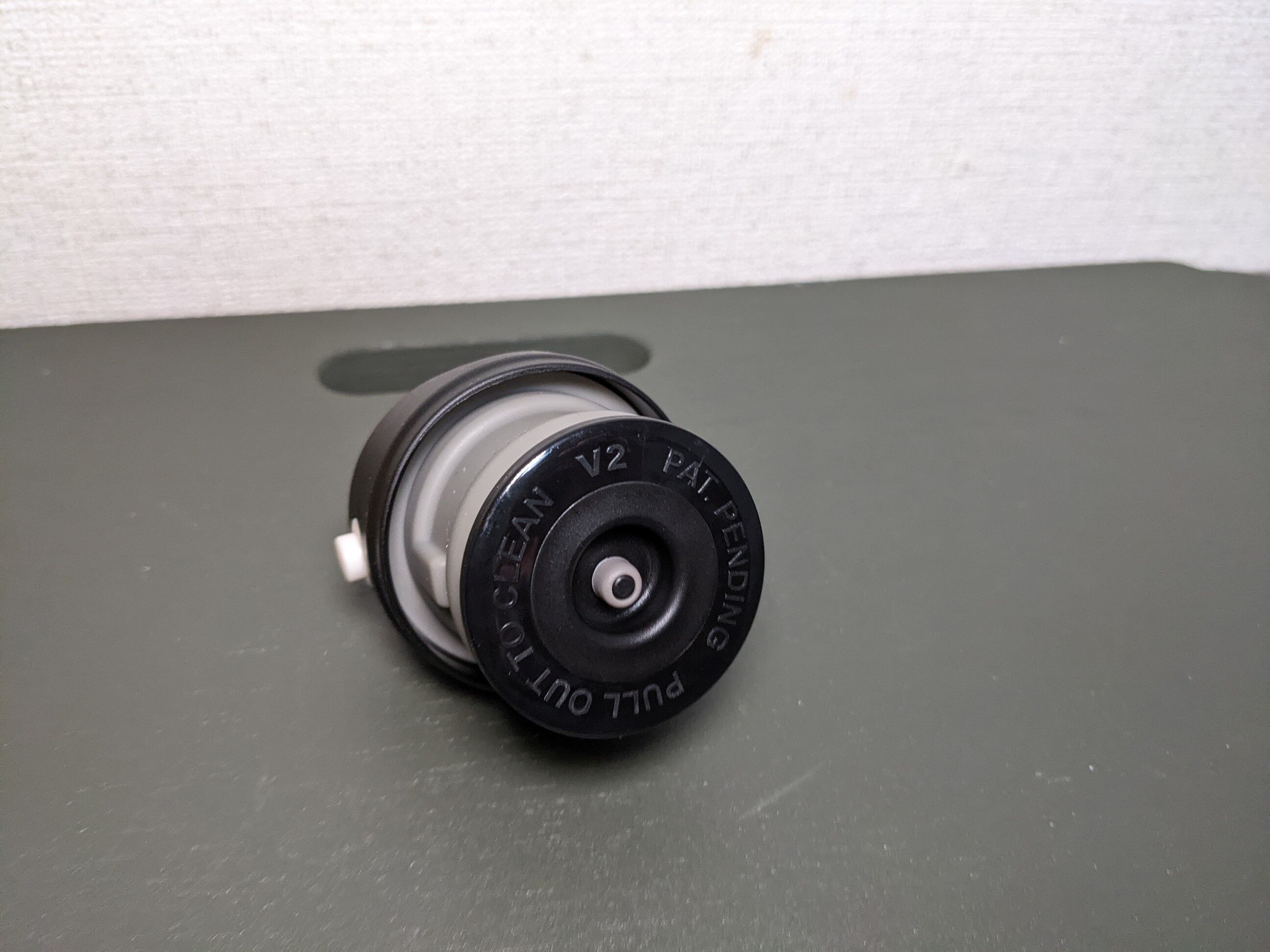 片手で簡単に開閉できるユニークなキャップが特徴です。
